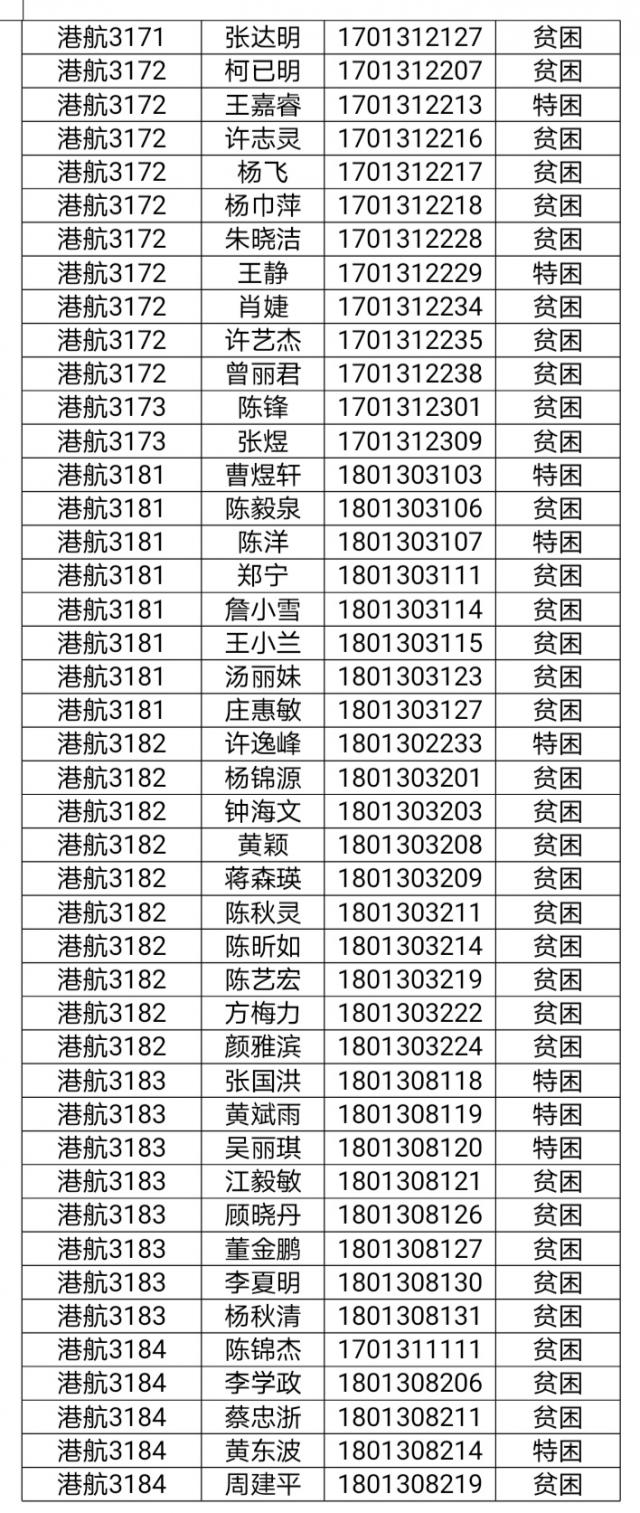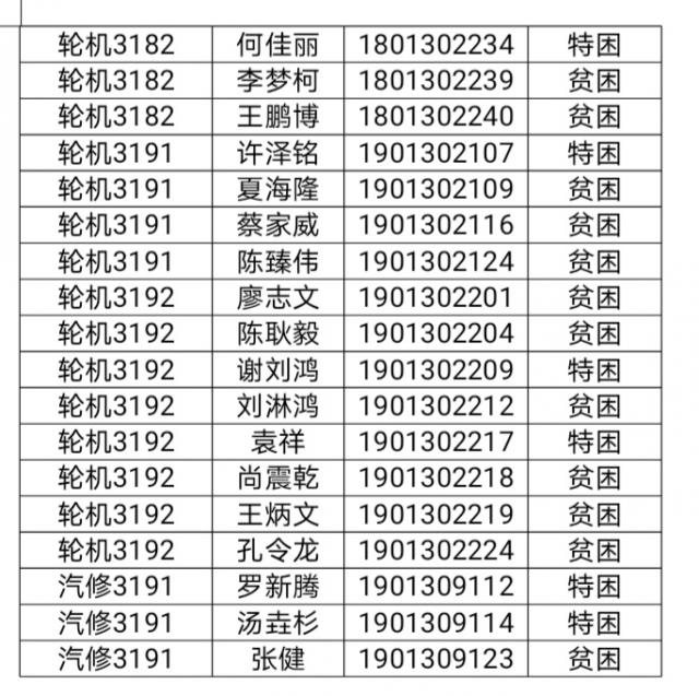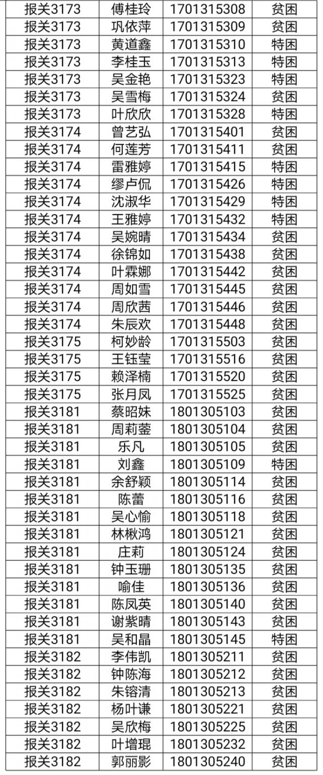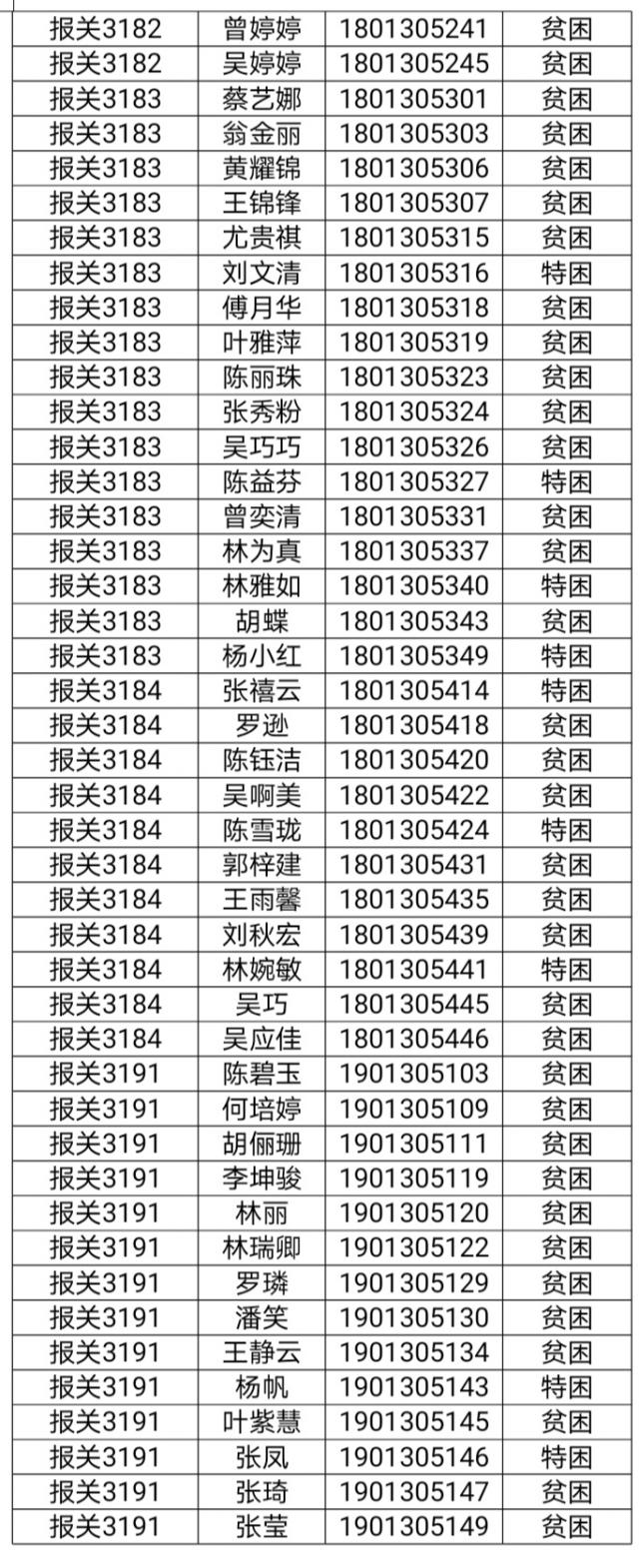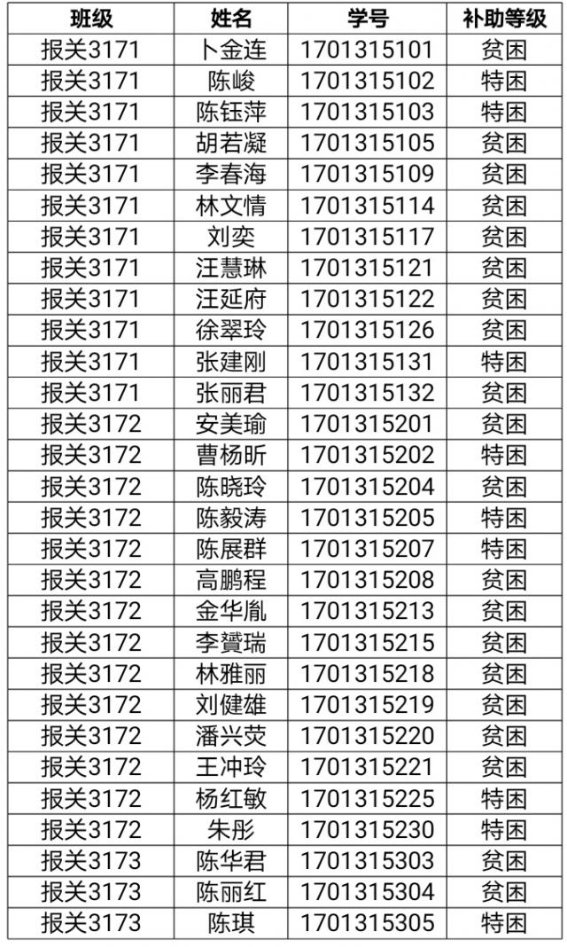 根据《厦门海洋职业技术学院国家奖学金、国家励志奖学金及国家助学金评定管理办法》的规定,以及《关于做好2019-2020学年家庭经济困难学生认定工作的通知》《关于开展201920学年国家助学金申请及审核报送的通知》的要求,对我系2019-2020学年国家助学金名单公示,如下: