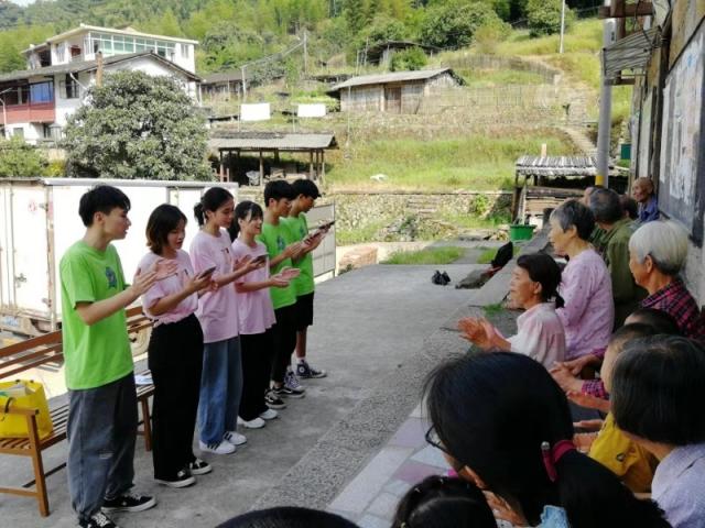 此外,针对村里留守老人多的现状,实践队于老人活动中心开展关爱空巢老人活动。通过慢性疾病的防治宣传、文艺表演等,赢得老人们的赞赏。实践队还跟随村民上山,砍毛竹,采摘玉竹、臭藤子等具有实用价值的草药,通过实践丰富劳动经验。