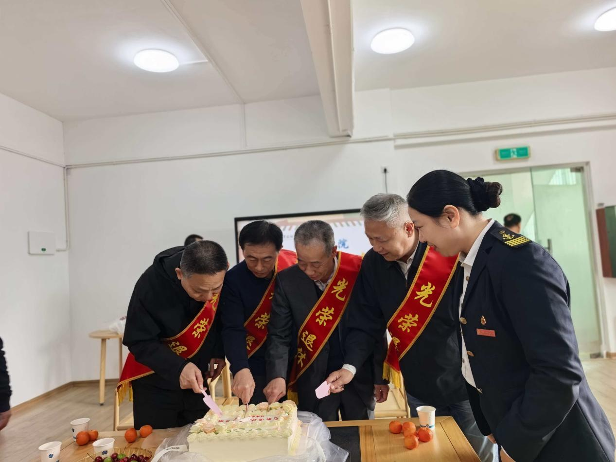 仪式上,全体人员合影留念,定格这份珍贵情谊。四位老师共同切开象征圆满的荣休蛋糕,与在场师生分享喜悦。在随后的自由交流中,大家畅谈往事,互道珍重,现场洋溢着浓浓的同事情、师生谊。