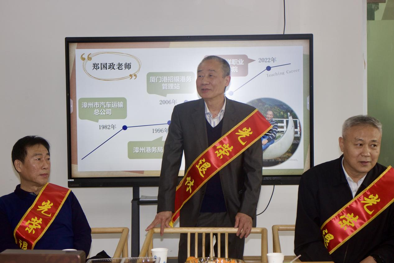 在温馨的乐曲声中,学院领导为四位老师佩戴荣休绶带,青年教师代表敬献鲜花。随后,四位老师依次分享了自己的执教感悟与退休感言。他们深情回顾教育生涯,寄语学院未来发展,话语间充满对教育事业的热爱与不舍。