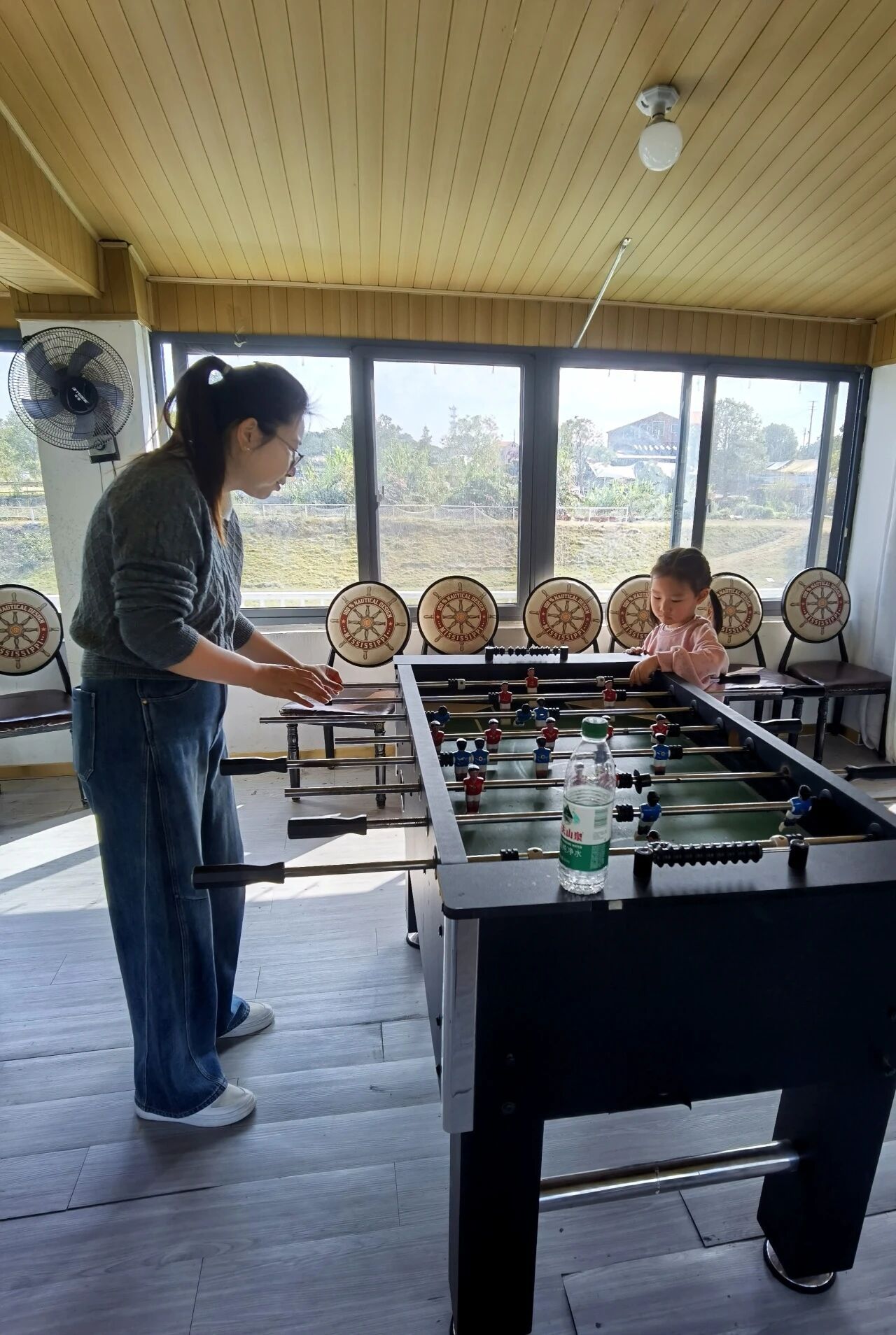 看吧,一到农庄,小朋友们、大朋友们都迫不及待地玩了起来,荡秋千的、喂萌宠的、玩桌球的、钓鱼的、打牌的……纷纷各就各位。