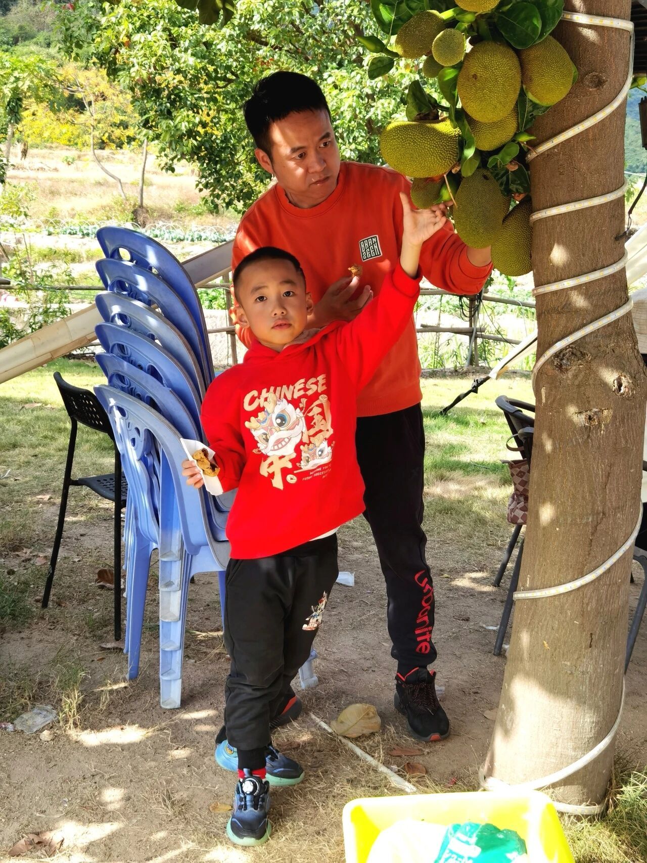 那些坐不住的,早早来到田边地头,打卡拍照、摄影采风、摘果子、溜娃子……,哦,还有摇甘蔗的,好不自在。