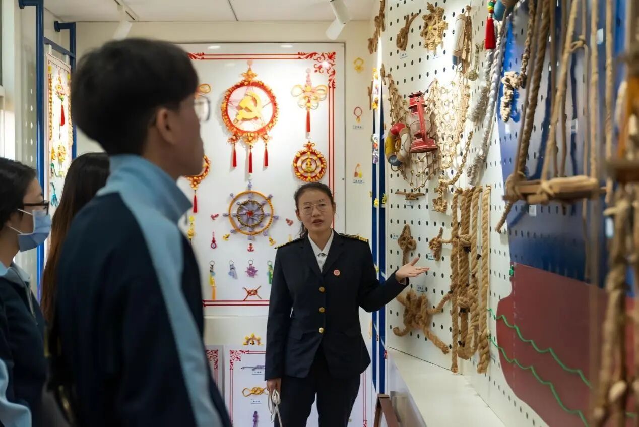 最后两岸青年共同走进“海丝结”工作室,非遗绳结技艺与航海文化的融合令人眼前一亮。在指导老师和志愿者的带领下,金门大学的同学们亲手体验绳结技艺,在一绕一系间了解中华传统文化中非遗绳结技艺的精巧,体会“中国结”系法的曼妙与其中凝结的团结、美好寓意,感悟千百年来海洋文化一脉相承的深厚底蕴。